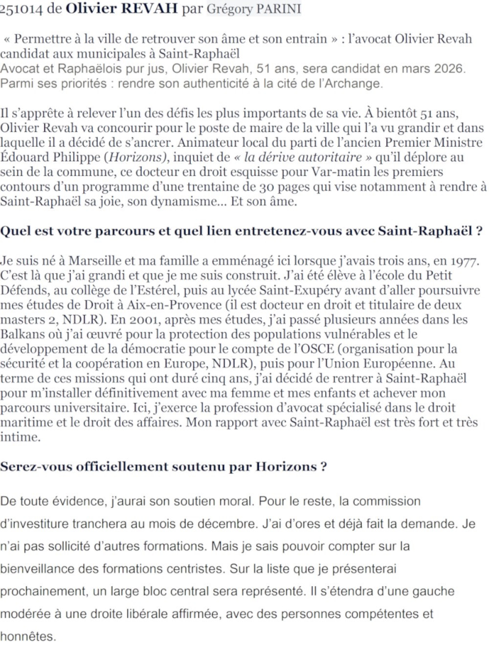 Pour la course à la mairie au sein de notre Cité Raphaëloise !