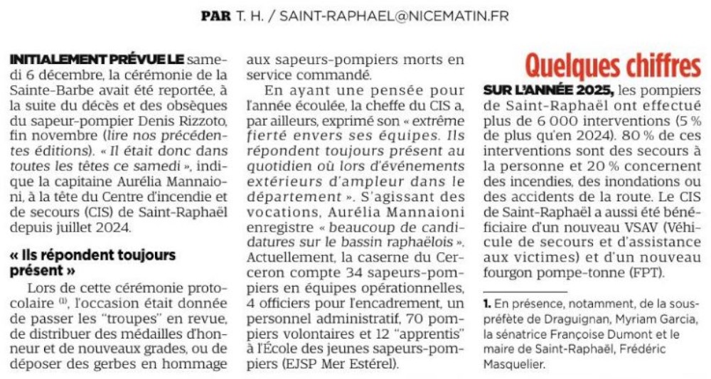 - Edition Var-Matin 21 Décembre 2025 •> Sainte-Barbe à Saint-Raphaël