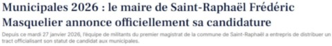 - Edition Var-Matin 28 janvier 2026 •> Municipale 2026 Saint-Raphaël : Frédéric MASQUELIER officialise sa candidature