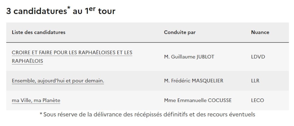 - Var (83) saint-Raphaël Candidatures du 1er tour