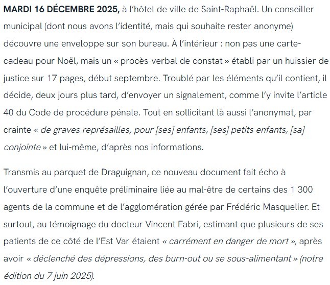 - Edition Var-Matin 28 janvier 2026 •> Municipale 2026 Saint-Raphaël : Frédéric MASQUELIER officialise sa candidature