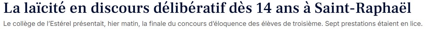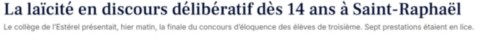 - Edition Var-Matin 30 janvier 2026 •> La laïcité en discours dès 14 ans à Saint-Raphaël
